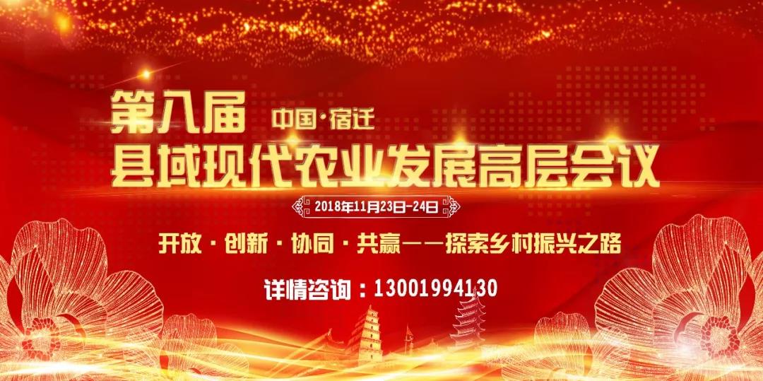 各有關(guān)單位及個(gè)人:“第八屆中國縣域現(xiàn)代農(nóng)業(yè)發(fā)展高層會(huì)議”將于2018年11月23日-24日在江蘇省宿遷市舉辦。會(huì)議主題為“開放·創(chuàng)新·協(xié)同·共贏——探索鄉(xiāng)村振興......