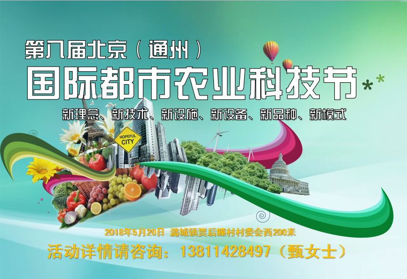 2018年5月19日-20日,將在北京國際都市農(nóng)業(yè)科技園舉辦“第八屆北京(通州)國際都市農(nóng)業(yè)科技節(jié)”,統(tǒng)籌國內(nèi)外農(nóng)業(yè)科技資源,通過“政、產(chǎn)、學(xué)、研、用”協(xié)同發(fā)展......
