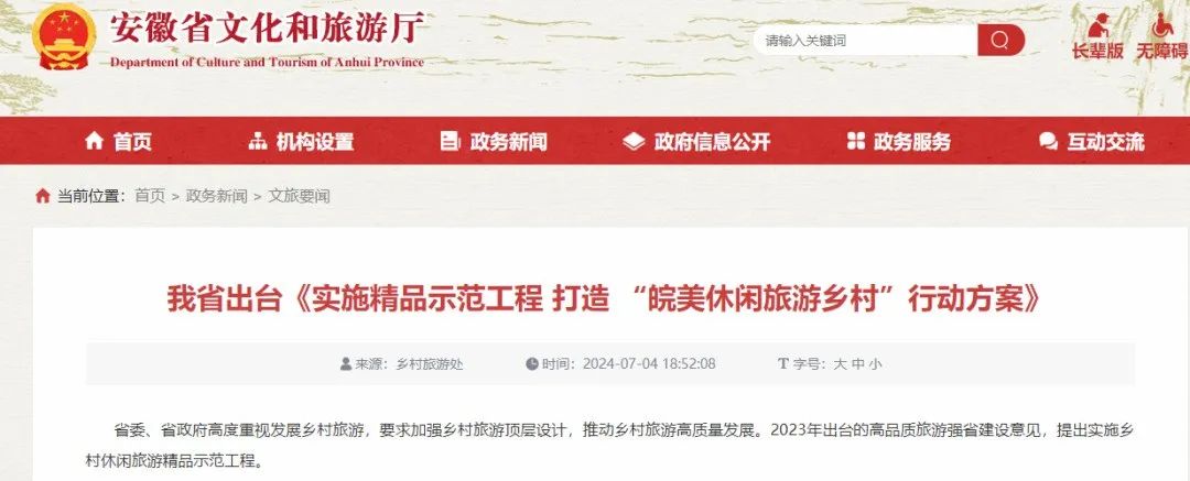 為推動(dòng)全省鄉(xiāng)村旅游發(fā)展提質(zhì)增效,更好滿足人民群眾旅游消費(fèi)升級(jí)需求,安徽省委、省政府高度重視發(fā)展鄉(xiāng)村旅游,要求加強(qiáng)鄉(xiāng)村旅游頂層設(shè)計(jì),推動(dòng)鄉(xiāng)村旅游高質(zhì)量發(fā)展,......