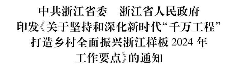 各市、縣(市、區(qū))黨委和人民政府,省直屬各單位: 現(xiàn)將《關(guān)于堅(jiān)持和深化新時(shí)代“千萬(wàn)工程”打造鄉(xiāng)村全面振興浙江樣板2024年工作要點(diǎn)》印發(fā)給你們,請(qǐng)結(jié)合實(shí)際認(rèn)真......