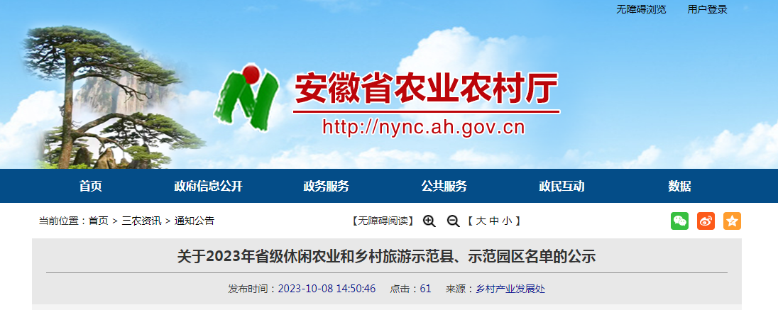 按照省農(nóng)業(yè)農(nóng)村廳《關(guān)于做好2023年省級(jí)休閑農(nóng)業(yè)和鄉(xiāng)村旅游示范縣、示范園區(qū)申報(bào)和監(jiān)測(cè)工作的通知》(皖農(nóng)產(chǎn)函〔2023〕501號(hào))要求,各市農(nóng)業(yè)農(nóng)村局認(rèn)真組織申報(bào)......