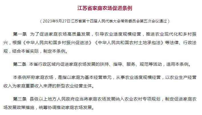 第一條 為了促進(jìn)家庭農(nóng)場(chǎng)高質(zhì)量發(fā)展,引導(dǎo)農(nóng)業(yè)適度規(guī)模經(jīng)營(yíng),推進(jìn)農(nóng)業(yè)現(xiàn)代化和鄉(xiāng)村振興,根據(jù)《中華人民共和國(guó)鄉(xiāng)村振興促進(jìn)法》《中華人民共和國(guó)農(nóng)村土地承包法》等法律......