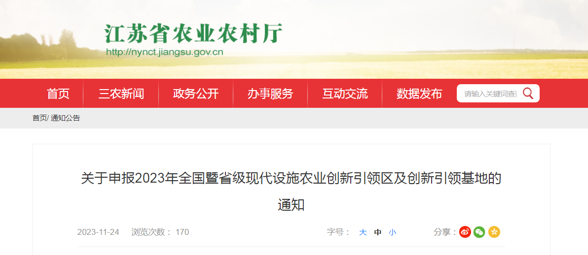 各設(shè)區(qū)市農(nóng)業(yè)農(nóng)村局:根據(jù)《農(nóng)業(yè)農(nóng)村部辦公廳關(guān)于開(kāi)展2023年全國(guó)現(xiàn)代設(shè)施農(nóng)業(yè)創(chuàng)新引領(lǐng)區(qū)及創(chuàng)新引領(lǐng)基地遴選工作的通知》《江蘇省現(xiàn)代設(shè)施農(nóng)業(yè)建設(shè)引領(lǐng)示范行動(dòng)實(shí)施方案......