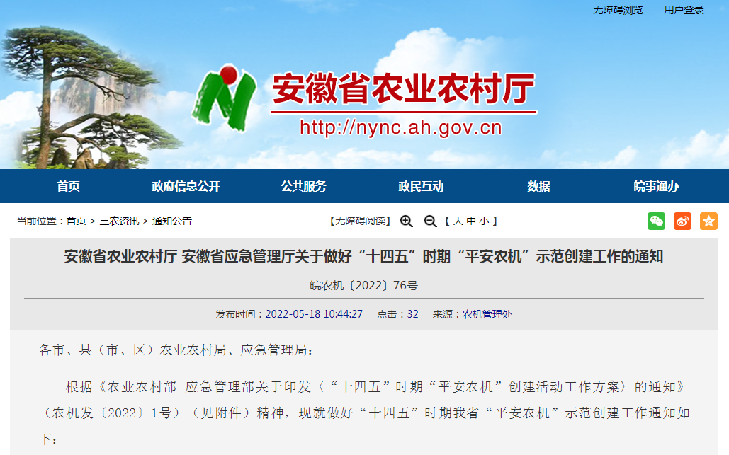 各市、縣(市、區(qū))農(nóng)業(yè)農(nóng)村局、應(yīng)急管理局:????根據(jù)《農(nóng)業(yè)農(nóng)村部 應(yīng)急管理部關(guān)于印發(fā)〈“十四五”時(shí)期“平安農(nóng)機(jī)”創(chuàng)建活動工作方案〉的通知》(農(nóng)機(jī)發(fā)〔2022〕......