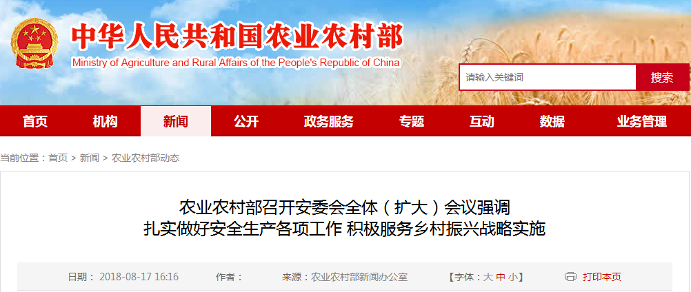 8月17日,農(nóng)業(yè)農(nóng)村部召開(kāi)安委會(huì)第一次全體(擴(kuò)大)會(huì)議,深入學(xué)習(xí)貫徹習(xí)近平總書(shū)記關(guān)于安全生產(chǎn)工作的重要論述,傳達(dá)學(xué)習(xí)李克強(qiáng)總理就全國(guó)安全生產(chǎn)電視電話會(huì)議的重要批......