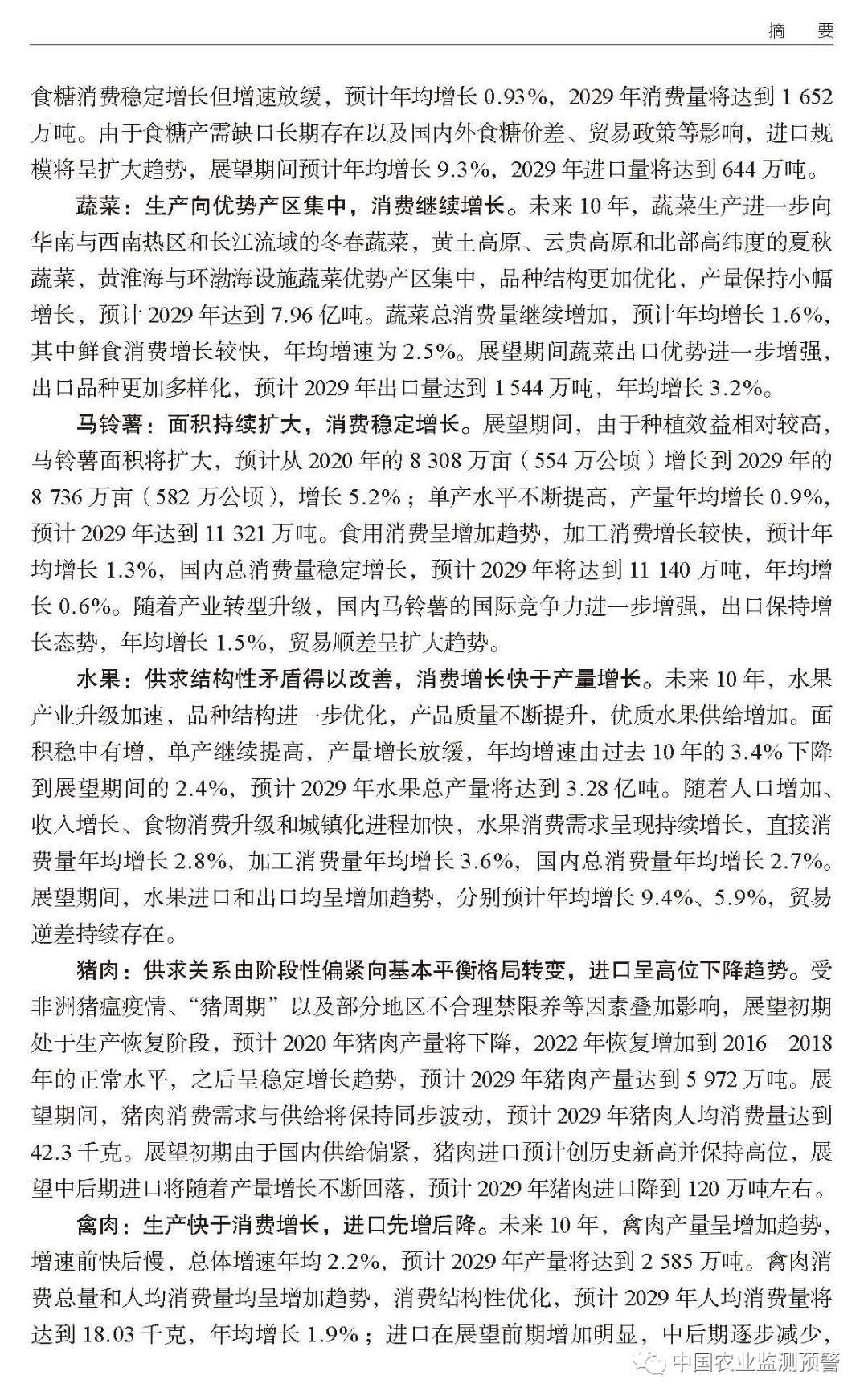 《報告》顯示,我國蔬菜生產(chǎn)量占世界50%以上,2019年達到71889萬噸,消費量僅為53245萬噸,完全可以自給。未來10年,得益于技術(shù)進步產(chǎn)量還將提升,但生產(chǎn)目標將發(fā)生轉(zhuǎn)變。農(nóng)業(yè)農(nóng)村部市場預警專家委員會副主任、市場與信息化司司長唐珂介紹,我國蔬菜生產(chǎn)將在安全性、生態(tài)型、標準化、規(guī)?;?、設施化等方面進一步增強,食用農(nóng)產(chǎn)品合格證制度將在全國試行,并將大力推動蔬菜生產(chǎn)綠色發(fā)展,名特優(yōu)新蔬菜的需求會明顯增加。同理,作為水果大國,未來十年,我國水果生產(chǎn)也將進一步向優(yōu)勢產(chǎn)區(qū)集中,品種結(jié)構(gòu)進一步優(yōu)化,果品質(zhì)量得到提升。