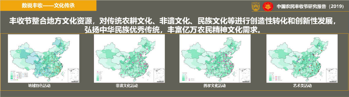 《報告》指出各地活動重心下沉到縣鄉(xiāng)村,以各地農時農事特點、優(yōu)秀傳統(tǒng)文化開展喜聞樂見的特色活動,為響應組織指導委員會開展的“6個千萬”鄉(xiāng)村振興系列活動,各地組織了文藝表演和主題匯演類、農耕文化和農事體驗類、鄉(xiāng)村美食品鑒和評選類、傳統(tǒng)農業(yè)節(jié)慶和產業(yè)節(jié)慶類、優(yōu)質農產品展銷和推介類、代表人物和特色產品評選類等系列活動。
