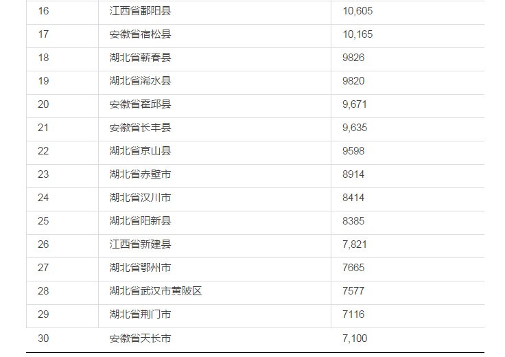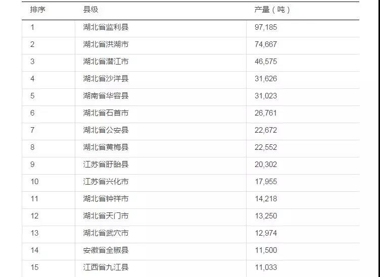 表2 2016年小龍蝦產(chǎn)量排行TOP30