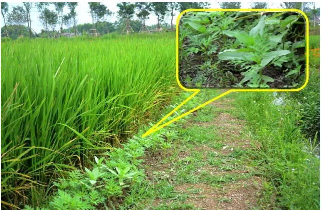田埂上雜草叢生,并非無人打理,而是刻意種植的,是經(jīng)多年反復(fù)實(shí)驗(yàn)篩選出來的功能性雜草,可引誘害蟲到草上產(chǎn)卵,同時(shí)該草對幼蟲具有較強(qiáng)的致死作用,可有效降低田間害蟲的種群數(shù)量和危害。