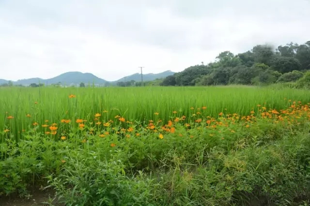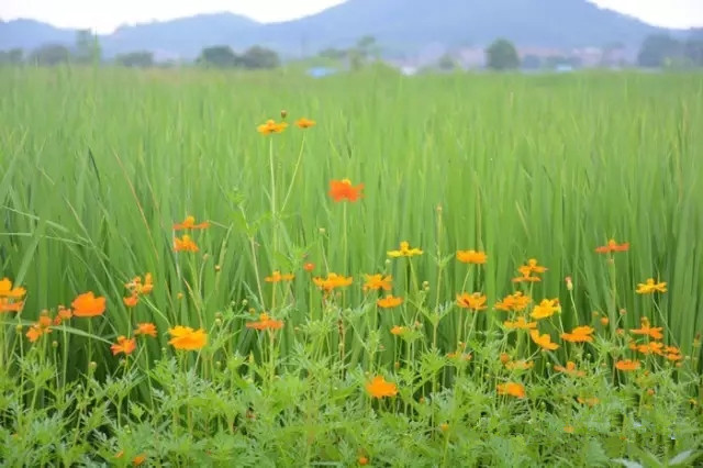 驚呆了,絕對驚呆了!百畝稻田與眾不同,田埂全用泥壘成,且長滿雜草;而田邊竟開滿了鮮花,甚是漂亮,卻不知道花為何名……興奮之余沖進(jìn)去看個(gè)究竟……