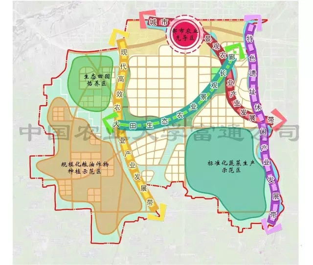 由中國農(nóng)業(yè)大學(xué)富通公司(簡稱中農(nóng)富通)規(guī)劃設(shè)計(jì)的“陜西省西咸新區(qū)灃西新城田園小鎮(zhèn)和都市農(nóng)業(yè)示范區(qū)”是農(nóng)業(yè)綜合體模式的代表,孕育著“現(xiàn)代田園城市”的新范式。整體規(guī)劃設(shè)計(jì)用創(chuàng)新思維將農(nóng)業(yè)和城鎮(zhèn)建設(shè)相結(jié)合,以各新城中心功能區(qū)為核心,以追憶西周文化為魂,以展示自然之美為線,集生態(tài)恢復(fù)、都市農(nóng)業(yè)體驗(yàn)、文化休閑、娛樂旅游等多功能于一體,以再現(xiàn)新城生態(tài)和文化記憶為目標(biāo)的,布局特色農(nóng)業(yè)、文化旅游、生態(tài)休閑等特色主題小鎮(zhèn)及莊園經(jīng)濟(jì)型小鎮(zhèn)對居住環(huán)境進(jìn)行點(diǎn)綴,構(gòu)建環(huán)境優(yōu)美、文化多樣、城鄉(xiāng)繁榮、產(chǎn)業(yè)發(fā)達(dá)、獨(dú)具魅力的現(xiàn)代田園社區(qū),形成“傾城之鏈,盈彩田園,絢麗畫卷。通過農(nóng)業(yè)村鎮(zhèn)一體化規(guī)劃,打造都市田園小鎮(zhèn)。實(shí)現(xiàn)產(chǎn)業(yè)、文化、生活一體化,打造都市農(nóng)業(yè)和城市建設(shè)高度融合的新區(qū)。