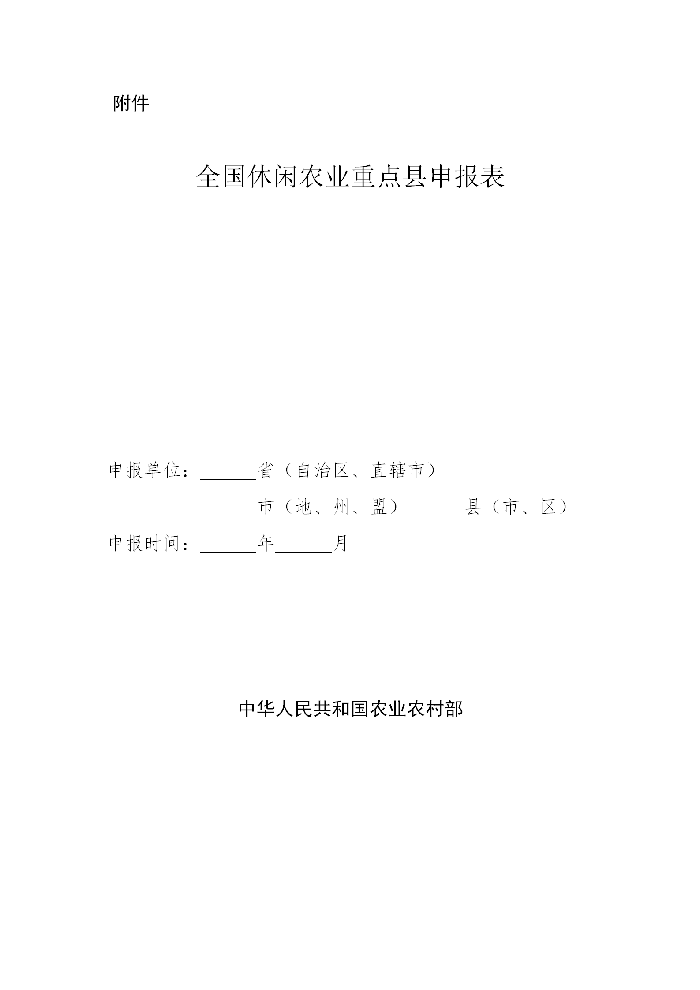 附件:全國休閑農(nóng)業(yè)重點(diǎn)縣申報(bào)表
