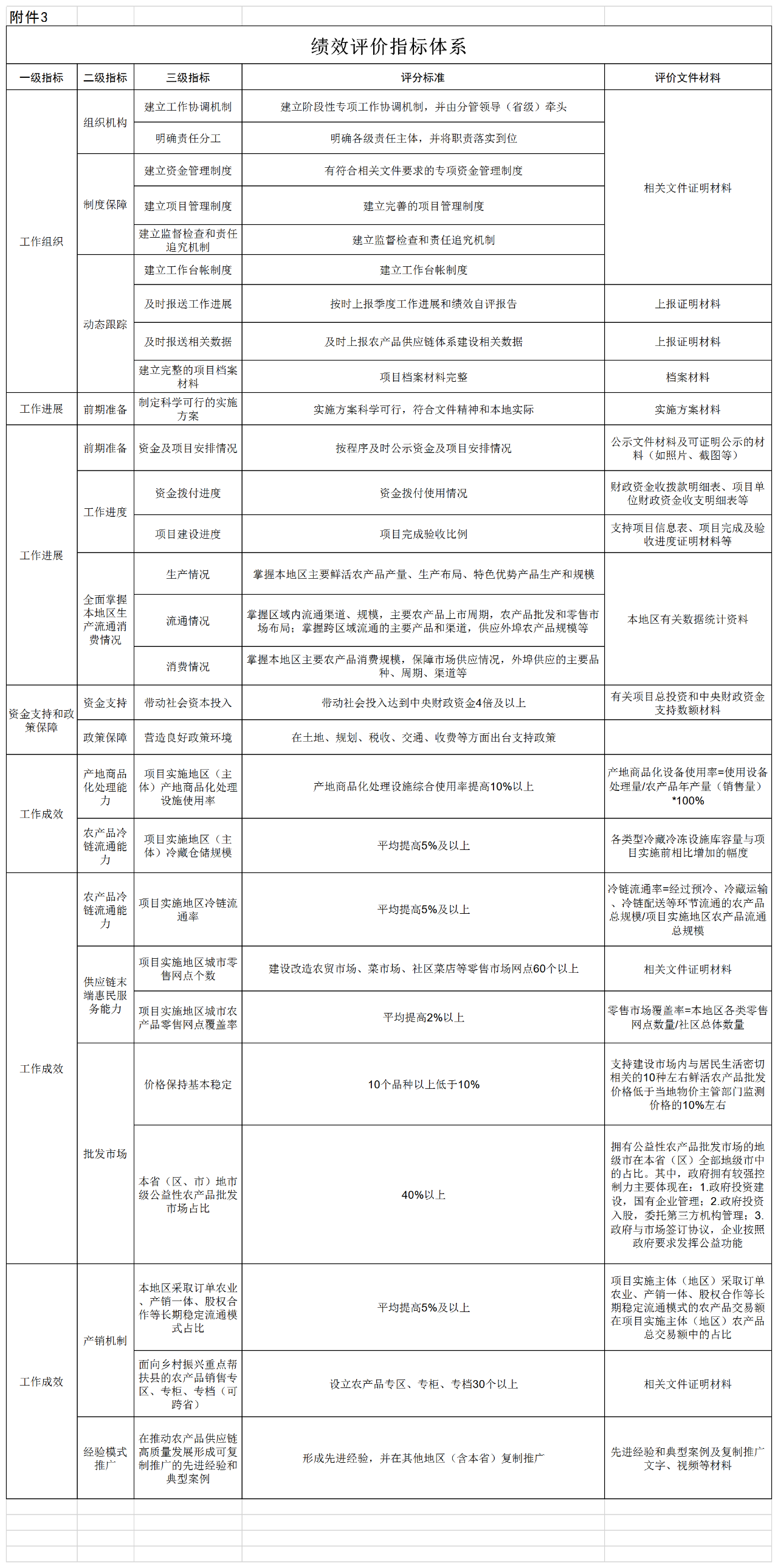 通過2年時間,加快形成農商聯系更為緊密、產銷銜接更為暢通的農產品供應鏈體系,具體績效指標如下: