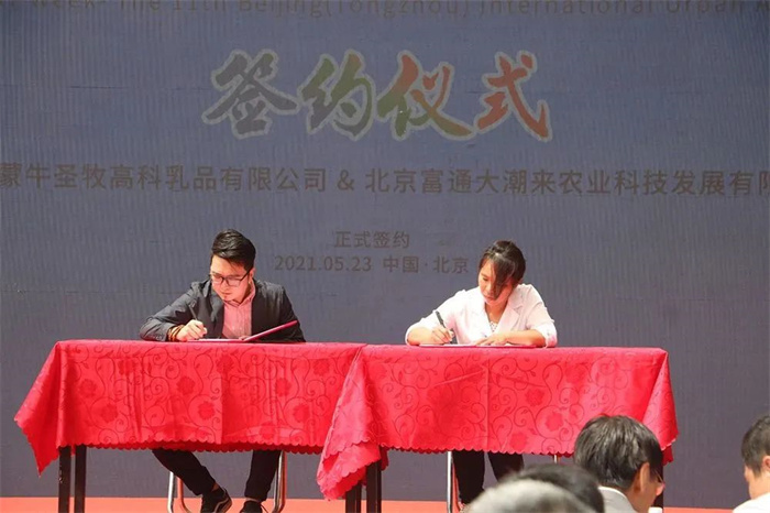 北京富通大潮來農(nóng)業(yè)科技發(fā)展有限公司與內(nèi)蒙古蒙牛圣牧高科乳品有限公司、北京明興旭豐產(chǎn)銷專業(yè)合作社、河北一航新能源科技有限公司分別就蒙牛冰品系列產(chǎn)品供銷、區(qū)域農(nóng)產(chǎn)品生產(chǎn)流通、生產(chǎn)基地綠色防控方面簽署了合作協(xié)議。