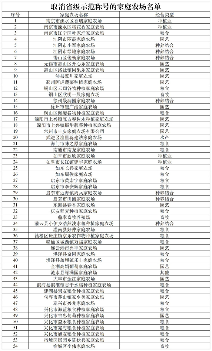 3.取消省級(jí)示范稱號(hào)的家庭農(nóng)場(chǎng)名單