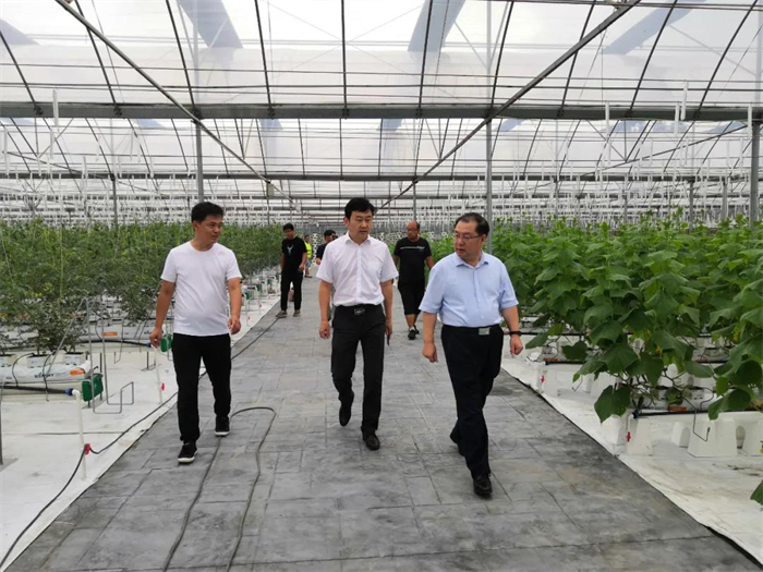 張?zhí)熘淌谝恍械桨素灾蕖澳吧匣ǘ伞笨疾煊芍修r(nóng)富通承建的“智慧農(nóng)業(yè)館”建設(shè)進(jìn)度,并作出指導(dǎo)性建議。