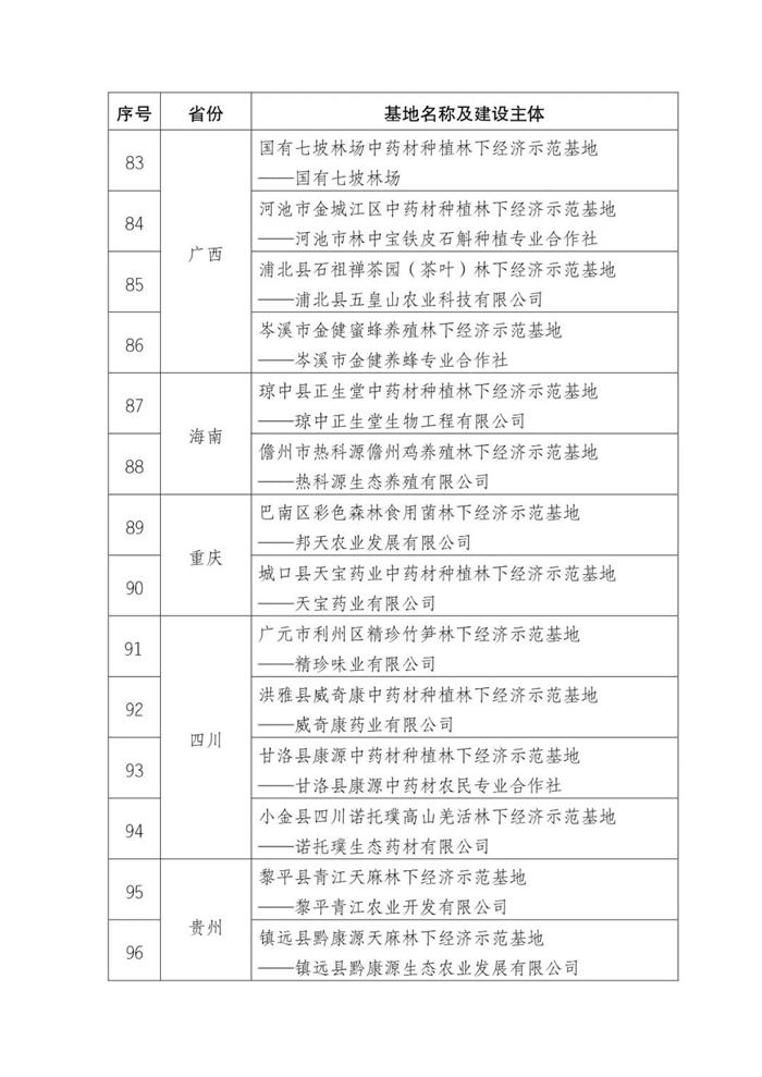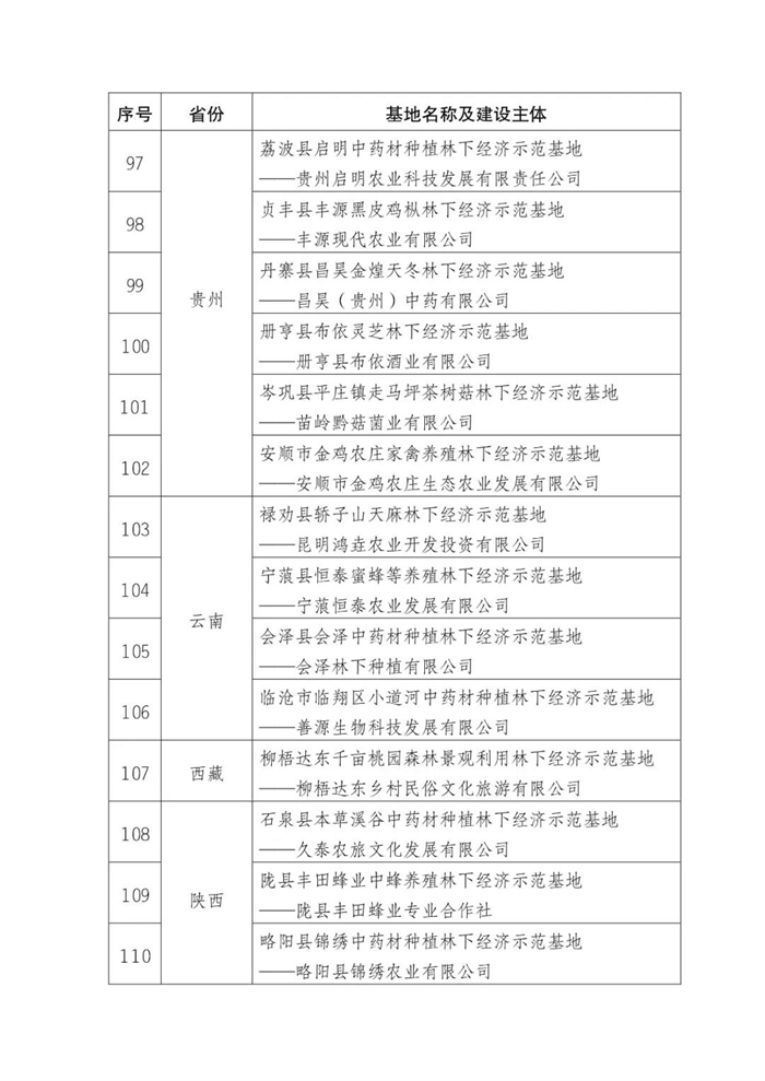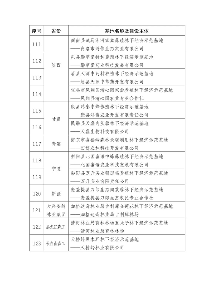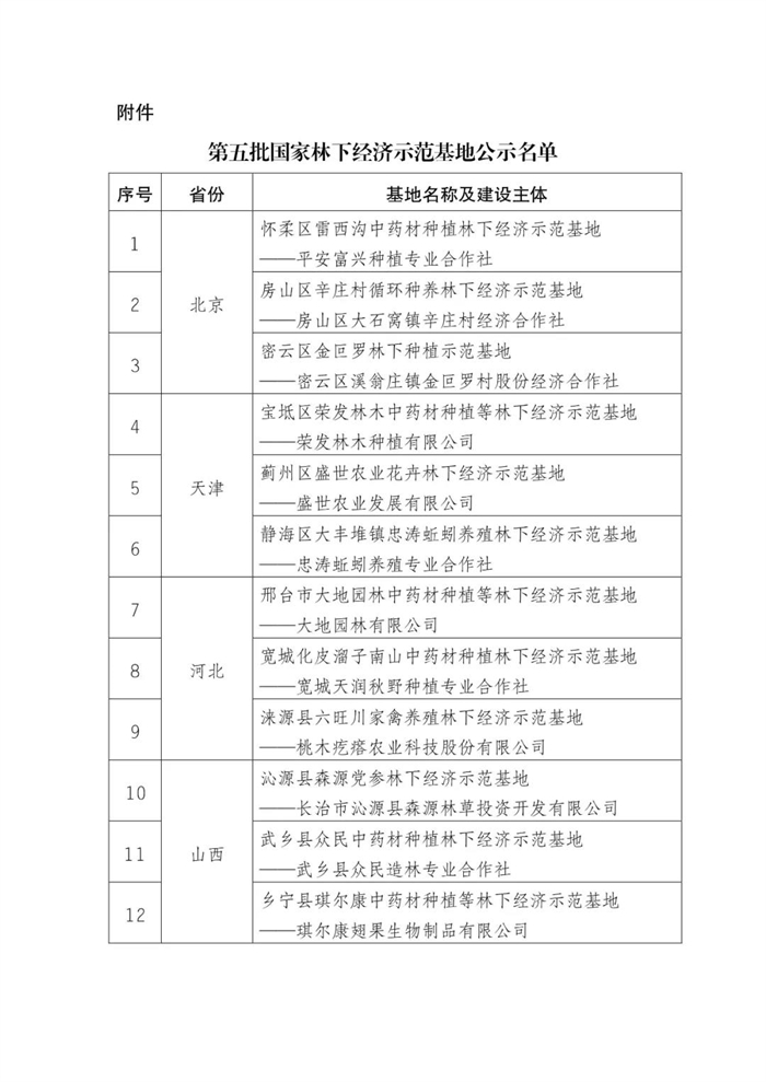 附件:第五批國(guó)家林下經(jīng)濟(jì)示范基地公示名單