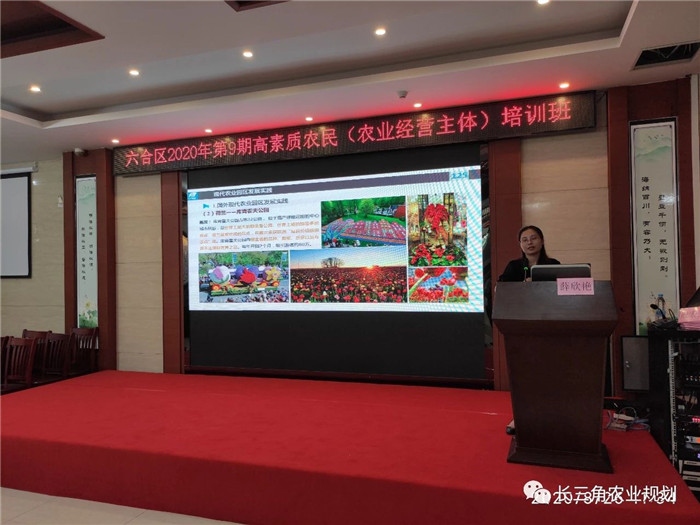 ?2020年8月26日上午,受南京市六合區(qū)農業(yè)農村局邀請,中農富通長三角農業(yè)規(guī)劃科學研究所薛欣艷所長在六合區(qū)平山林場(農民田間學校)為區(qū)內農業(yè)龍頭企業(yè)、休閑農業(yè)、家庭農場等農業(yè)新型經營主體約100名負責人進行了現代農業(yè)園區(qū)建設理論與實踐的專題授課。