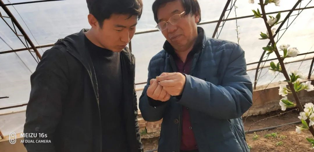 ▼3月11日,山西省農(nóng)業(yè)科學(xué)院園藝研究所王保明研究員到莊子基地指導(dǎo)櫻桃樹的花期管理技術(shù)。