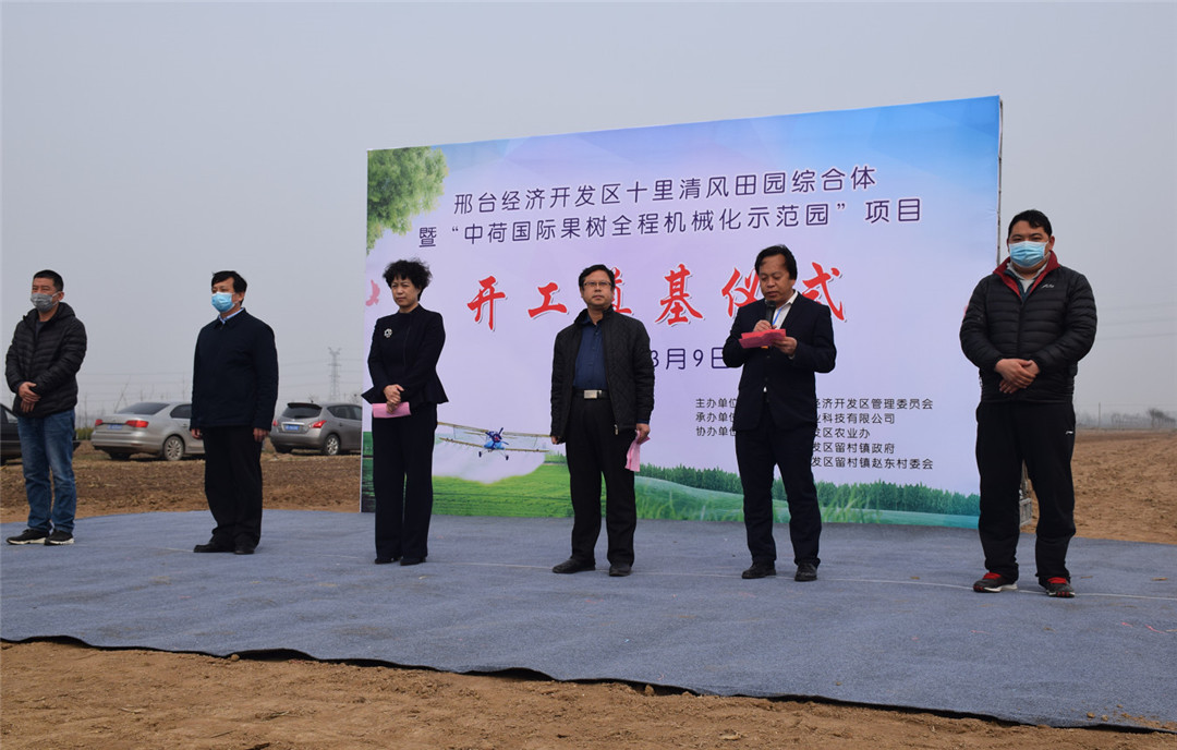 ▼邢臺(tái)市農(nóng)業(yè)局、林業(yè)局領(lǐng)導(dǎo)、開發(fā)區(qū)領(lǐng)導(dǎo)參加河北富襄種業(yè)科技有限公司“中荷國際果樹全程機(jī)械化示范園”項(xiàng)目開工奠基儀式。