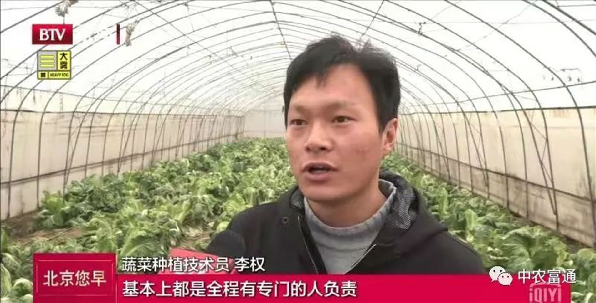▼12月9日,北京電視臺《北京您早》欄目報道中農富通分支機構——北京富通富通大潮來公司,介紹了大潮來秉持綠色果蔬、全程把控、安全優(yōu)質的原則,讓百姓吃到放心食材,打造北京城市副中心的菜籃子。