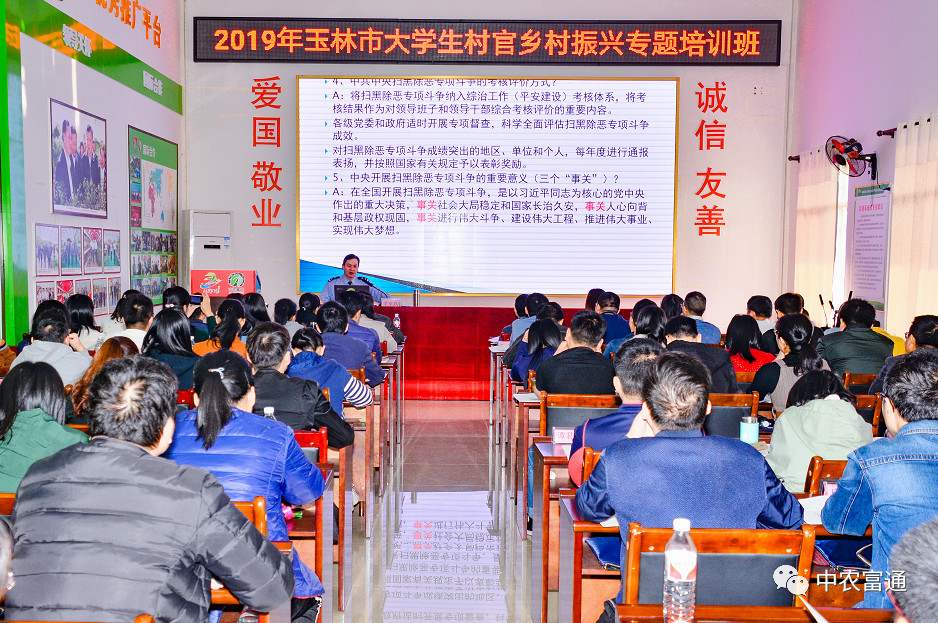 ▼11月26日,2019年玉林市大學(xué)生村官鄉(xiāng)村振興專題培訓(xùn)班在中農(nóng)富玉舉行開班儀式,廣西自治區(qū)農(nóng)業(yè)農(nóng)村廳發(fā)展規(guī)劃處處長羅應(yīng)平等為玉林市大學(xué)生村官培訓(xùn)班授課。