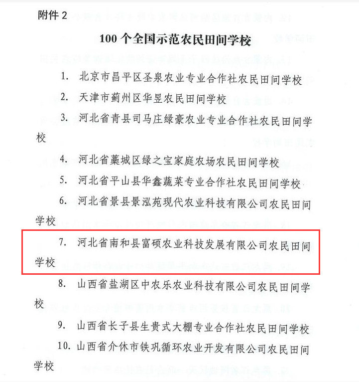 ▼近日,中農(nóng)富通示范基地——南和農(nóng)業(yè)嘉年華運營單位河北富碩農(nóng)業(yè)科技有限公司通過中央農(nóng)廣校認證,成為100個全國示范農(nóng)民田間學(xué)校之一。