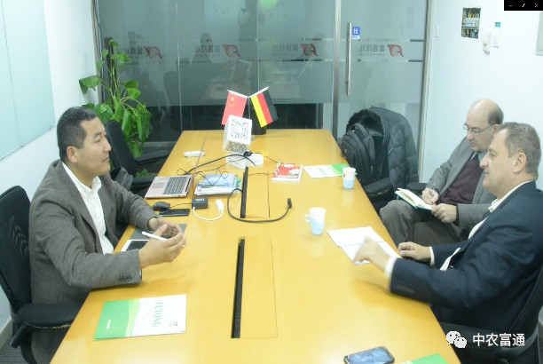 2019年11月06日,德國(guó)駐華使館農(nóng)業(yè)參贊Axel Wildner與中德農(nóng)業(yè)合作中心執(zhí)行主任Dr. Jurgen Ritter拜訪中農(nóng)富通。
