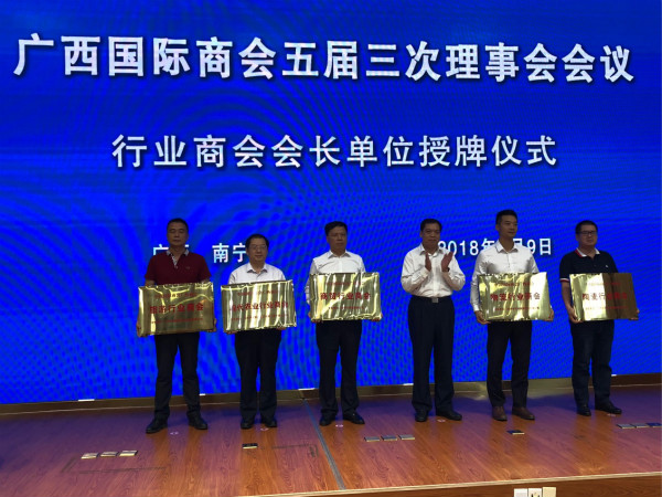 自治區(qū)政協(xié)副主席錢學(xué)明出席會(huì)議并做了“發(fā)揮行業(yè)組織作用,助推貿(mào)促事業(yè)發(fā)展”的專題講話。會(huì)議審議通過了廣西國(guó)際商會(huì)2017年工作報(bào)告及理事會(huì)增補(bǔ)候選副會(huì)長(zhǎng)及理事單位名單,成立了商貿(mào)、現(xiàn)代農(nóng)業(yè)、物流、旅游、陶瓷等五個(gè)行業(yè)商會(huì),并為行業(yè)商會(huì)會(huì)長(zhǎng)單位授牌。