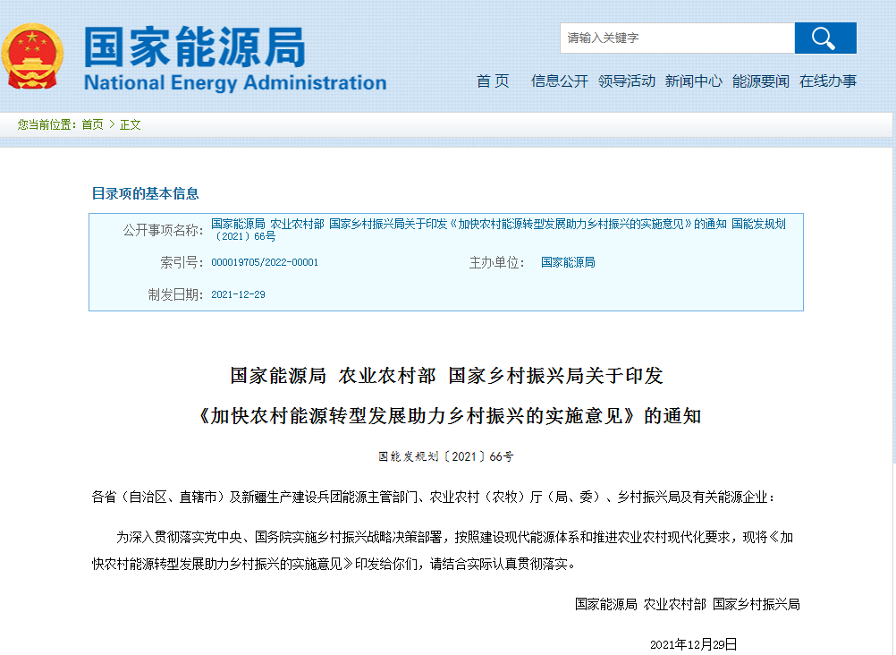 農(nóng)村地區(qū)能源綠色轉(zhuǎn)型發(fā)展,是滿足人民美好生活需求的內(nèi)在要求,是構(gòu)建現(xiàn)代能源體系的重要組成部分,對鞏固拓展脫貧攻堅成果、促進鄉(xiāng)村振興,實現(xiàn)碳達峰、碳中和目標和農(nóng)業(yè)......