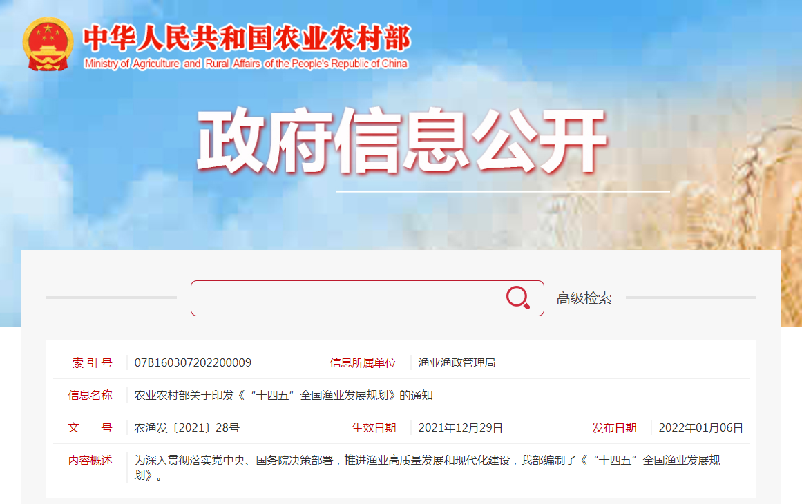 近日,農(nóng)業(yè)農(nóng)村部制定印發(fā)了《“十四五”全國漁業(yè)發(fā)展規(guī)劃》(以下簡稱“《規(guī)劃》”),圍繞《規(guī)劃》編制起草的總體考慮、主要內(nèi)容、落實落地等問題,記者采訪了農(nóng)業(yè)農(nóng)村部......