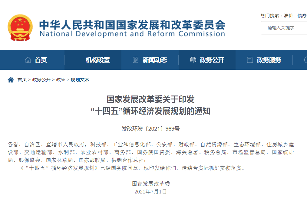 發(fā)展循環(huán)經(jīng)濟是我國經(jīng)濟社會發(fā)展的一項重大戰(zhàn)略?!笆奈濉睍r期我國進入新發(fā)展階段,開啟全面建設(shè)社會主義現(xiàn)代化國家新征程。大力發(fā)展循環(huán)經(jīng)濟,推進資源節(jié)約集約利用,構(gòu)......