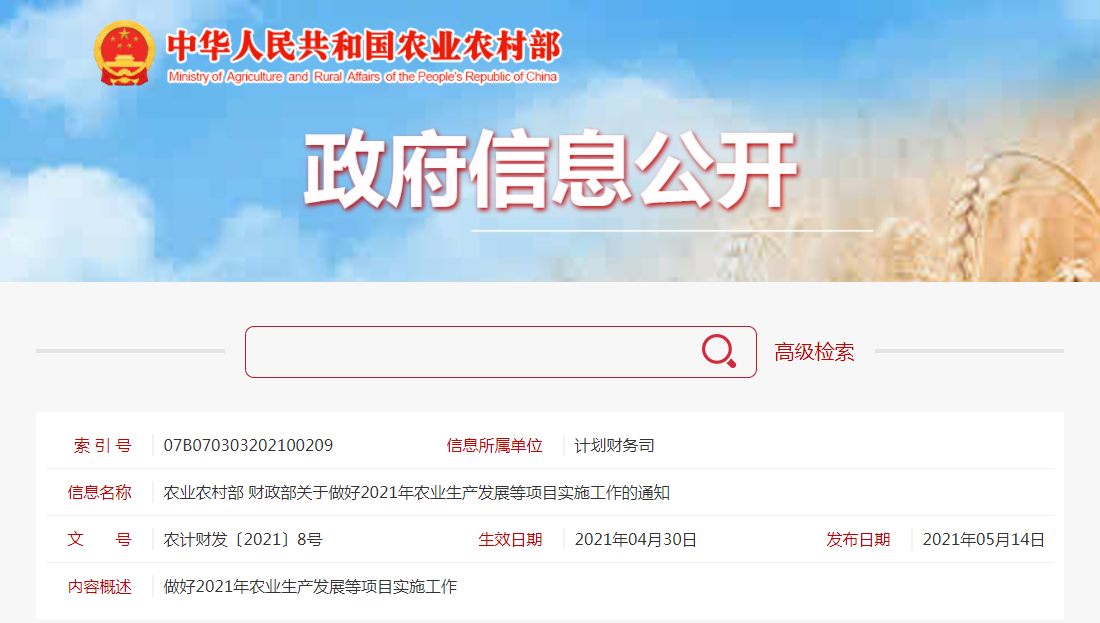 農(nóng)業(yè)農(nóng)村部 財政部關(guān)于做好2021年農(nóng)業(yè)生產(chǎn)發(fā)展等項目實施工作的通知各省、自治區(qū)、直轄市及計劃單列市農(nóng)業(yè)農(nóng)村(農(nóng)牧)、畜牧獸醫(yī)、漁業(yè)廳(局、委)、財政廳(局),......