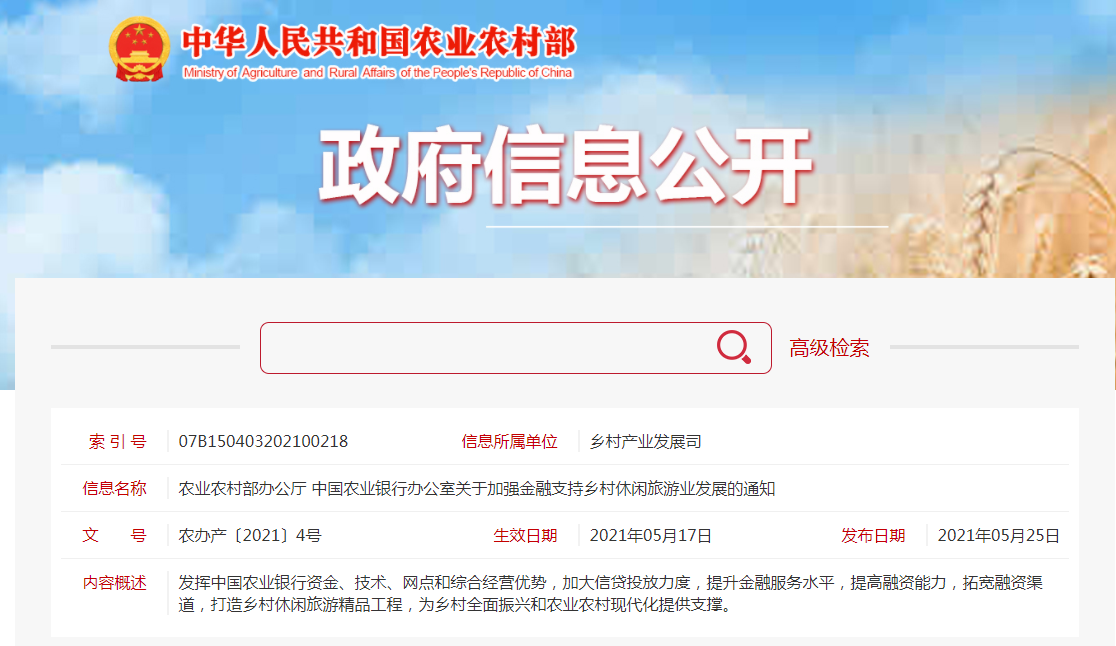 各省、自治區(qū)、直轄市農(nóng)業(yè)農(nóng)村(農(nóng)牧)廳(局、委),新疆生產(chǎn)建設(shè)兵團農(nóng)業(yè)農(nóng)村局,中國農(nóng)業(yè)銀行各省、自治區(qū)、直轄市分行,新疆生產(chǎn)建設(shè)兵團分行,各直屬分行:鄉(xiāng)村休閑旅......