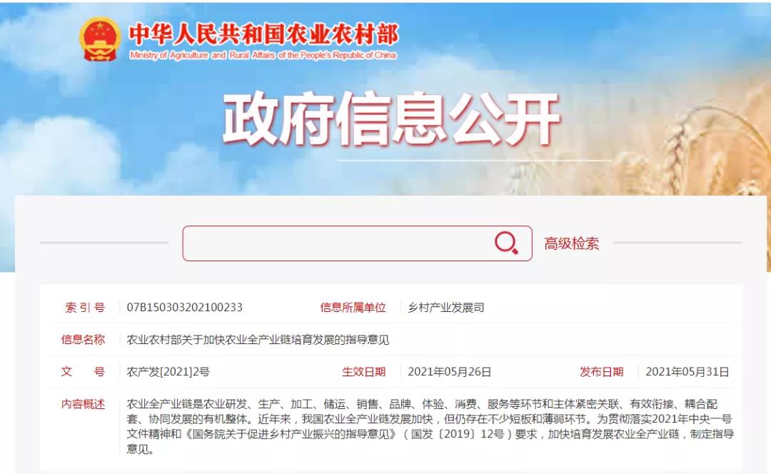 各省、自治區(qū)、直轄市及計劃單列市農(nóng)業(yè)農(nóng)村(農(nóng)牧)廳(局、委),新疆生產(chǎn)建設(shè)兵團農(nóng)業(yè)農(nóng)村局: 農(nóng)業(yè)全產(chǎn)業(yè)鏈是農(nóng)業(yè)研發(fā)、生產(chǎn)、加工、儲運、銷售、品牌、體驗、消費、......