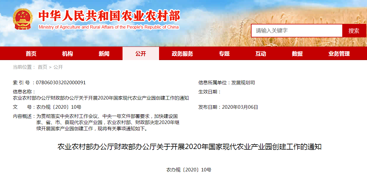 為貫徹落實(shí)中央農(nóng)村工作會議、中央一號文件部署要求,加快建設(shè)國家、省、市、縣現(xiàn)代農(nóng)業(yè)產(chǎn)業(yè)園(以下簡稱“產(chǎn)業(yè)園”),農(nóng)業(yè)農(nóng)村部、財(cái)政部決定2020年繼續(xù)開展國家產(chǎn)業(yè)......