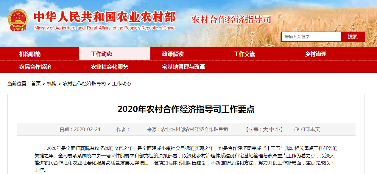 2020年農(nóng)村合作經(jīng)濟(jì)指導(dǎo)司工作要點(diǎn)...