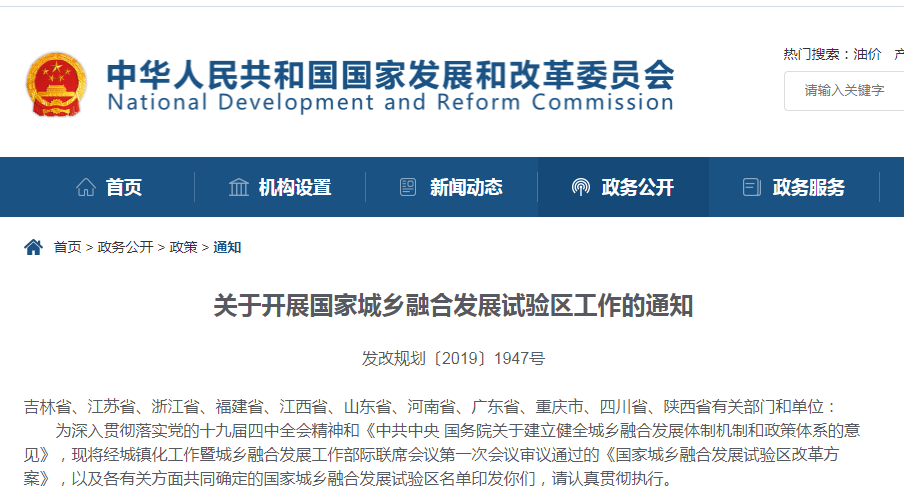 近日,國(guó)家發(fā)改委、中央農(nóng)村工作領(lǐng)導(dǎo)小組辦公室、農(nóng)業(yè)農(nóng)村部等十八部門(mén)聯(lián)合印發(fā)《國(guó)家城鄉(xiāng)融合發(fā)展試驗(yàn)區(qū)改革方案》(以下簡(jiǎn)稱(chēng)《方案》),11個(gè)地區(qū)被確定為國(guó)家城鄉(xiāng)融合......