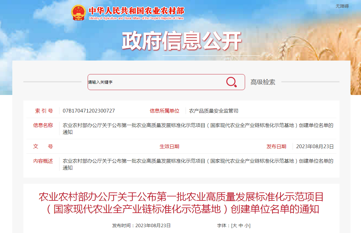 各省、自治區(qū)、直轄市農(nóng)業(yè)農(nóng)村(農(nóng)牧)廳(局、委),新疆生產(chǎn)建設(shè)兵團(tuán)農(nóng)業(yè)農(nóng)村局:按照《農(nóng)業(yè)農(nóng)村部關(guān)于開展國家現(xiàn)代農(nóng)業(yè)全產(chǎn)業(yè)鏈標(biāo)準(zhǔn)化示范基地創(chuàng)建的通知》(農(nóng)質(zhì)發(fā)〔2......