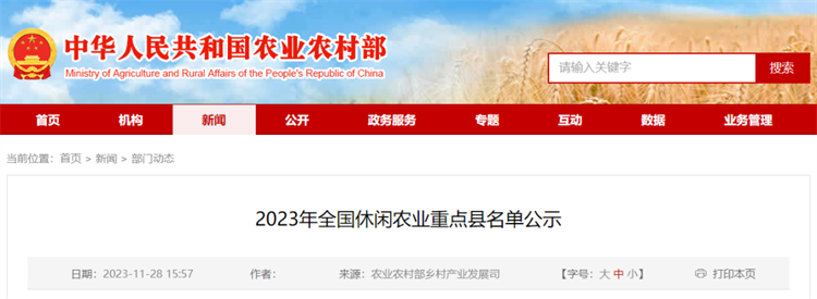 根據(jù)《農(nóng)業(yè)農(nóng)村部辦公廳關(guān)于開展2023年全國休閑農(nóng)業(yè)重點(diǎn)縣申報(bào)和監(jiān)測工作的通知》(農(nóng)辦產(chǎn)〔2023〕4號(hào))要求,今年我部開展了全國休閑農(nóng)業(yè)重點(diǎn)縣建設(shè)工作。經(jīng)地方......