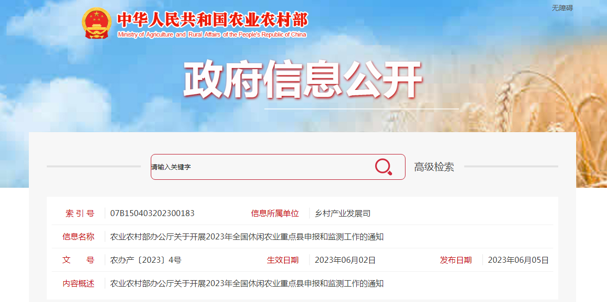 各省、自治區(qū)、直轄市農(nóng)業(yè)農(nóng)村(農(nóng)牧)廳(局、委),新疆生產(chǎn)建設(shè)兵團(tuán)農(nóng)業(yè)農(nóng)村局:為深入貫徹落實(shí)中央農(nóng)村工作會議和《中共中央、國務(wù)院關(guān)于做好2023年全面推進(jìn)鄉(xiāng)村振......